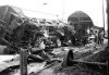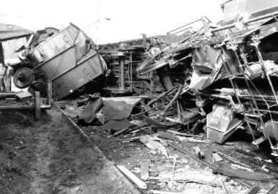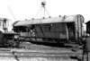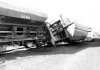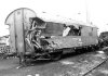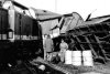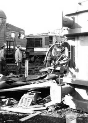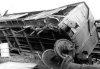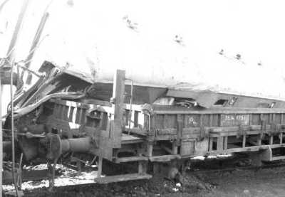 Ein Flachwagen hat den Wohnwagen eines Bauzuges aufgeschlitzt. |
