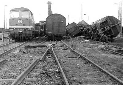 Auf drei Gleisen verteilt sich der Schrott. |